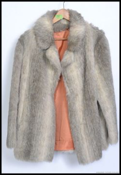 A 1950's vintage ladies fur coat with red lined interior being hip length.