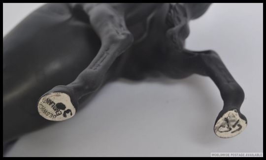 A BESWICK FIGURE OF A BLACK HORSE with white blaze and one white sock, matte finish, 18cm high stamped to feet along with another similar horse. H19cm