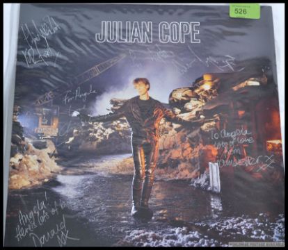 Julian Cope - A signed Julian Cope long play record ' Saint Julian ' signed by Julian Cope, Donald Ross Skinner, Chris Whitten, James Eller and Double De Harrison, along with a signed Trampolene EP unopened along with a signed set list from 1987