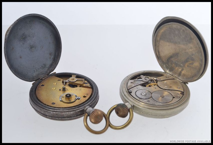 2 early 20th century nickel silver pocket watches each with subsiduary seconds dials. Total weight 181g