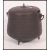 A 20th century rustic large cast iron cooking pot cauldron with lid raised on three legs