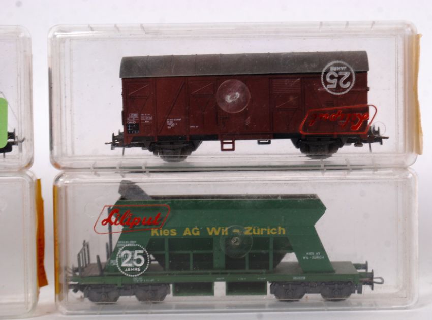 LILLIPUT: A collection of 4x Lilliput H0 gauge railway trainset wagons. Each within the original box. WORLDWIDE POSTAGE AVAILABLE ON ALL ITEMS. UK - £15.99+VAT. EUROPE - From £19.99+VAT, AMERICA - From £25.99+VAT. PLEASE CONTACT US FOR A QUOTE OVERSEAS. COMBINED POSTAGE AVAILABLE Viewing welcome by appointment only. See www.eastbristol.co.uk for full rates.