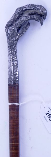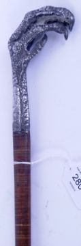 A stunning World War One Imperial German officers talon walking stick. The oval tapering stem with beautiful applied silver / white metal plated eagles talon handle. Bass Ferrule to base
