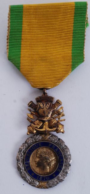 Médaille militaire; Third highest award of the French republic. Believed WWI First World War period, but possibly earlier. ' Valeur Et Discipline ' to one side, decorated with enamel. Silver. With original ribbon.