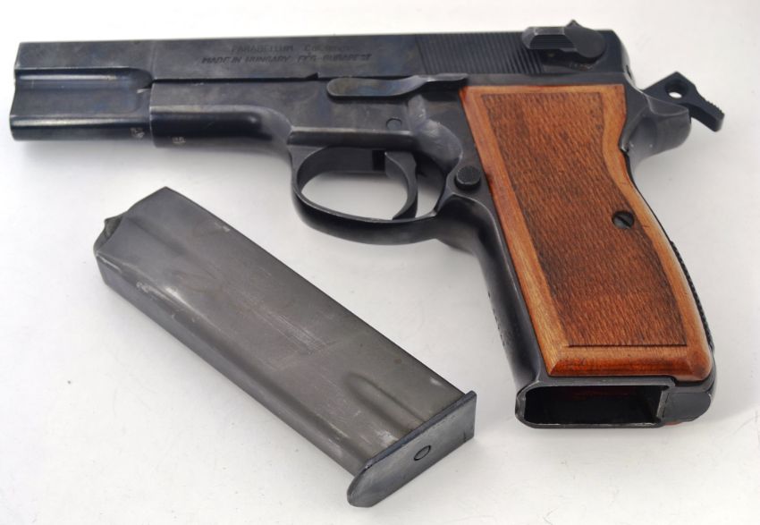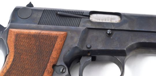 A Browning FM Hi Power 9mm semi automatic pistol by FEG. Deactivated, with certificate (dated 2000). Dry fires, all moving parts. Serial number 10342 (all matching)