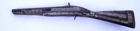 An early 19th century Ottoman mother of pearl musket. The mechanism being marked for 1806 EVIC - Leigh Gilded banded with Octagonal barrel and stunning mother of pearl inlay