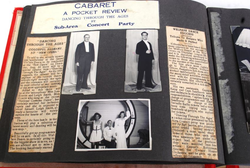 A fascinating original Second World War WWII era c1946 Album of theatre productions by the British Army Welfare Service in Bangalore, India. Packed with photos, leaflets, programmes & some autographs. Complete & unusual insight into the army in the Indian sub continent.