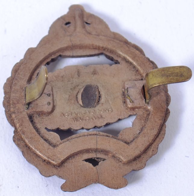 An original WWII Second World War Royal Armoured Corps cap badge by A Stanley & Sons Walsall. Inscribed Fear Naught. This is the plastic example issued when unable to produce metal due to low reserves,