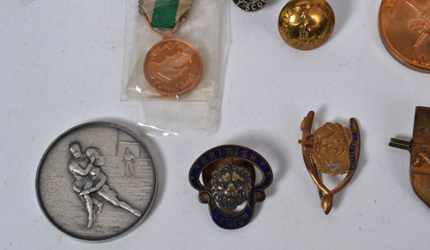 A collection of Arabian military medals with Arabic writings - casts Complete with ribbons. Together with a collection of badges, cap badges, lapels etc
