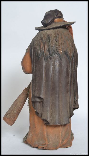 A vintage chalk ware fair ground prize modelled as a witch, with her broom stick. H49cm