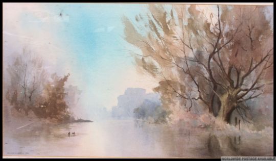 William North, 1991. Charlton under Otmore being signed and dated watercolour of abstract countryside scene. Framed and glazed