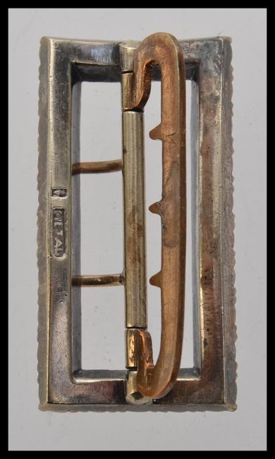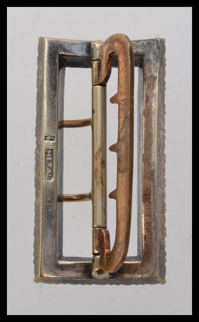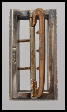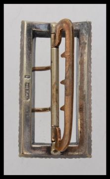 A Victorian buckle set with paste stones in metal setting with a two prong safety bar. Weight 19.5g. Measures 4cms x 2cms.
