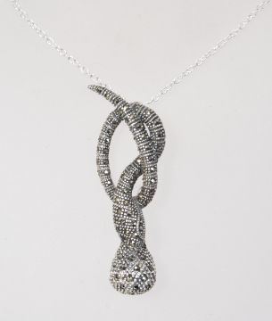 A 925 silver pendant necklace with large marcasite set snake pendant on a belcher link chain. Measures 18 inches.