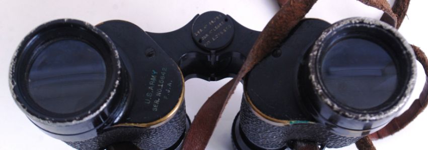 US ARMY BINOCULARS: A good pair of vintage US Army issued Wollensak 6x30 binoculars. Stamped US Army to one side. Within the original case.