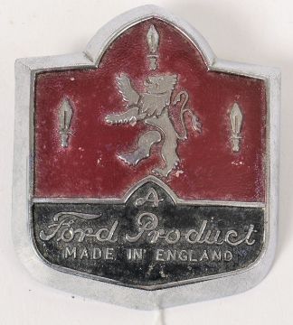 FORD ZEPHYR BADGE: An original 1950's Ford Zephyr / Zodiac Mk1 Grill Boot Badge c1951-56. Decorated with a lion and black panel for ' A Ford Product Made In England '