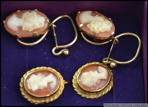 2 pairs of vintage 9ct gold ladies shell cameo earrings, both with depictions of maidens. Total weight 5.3g