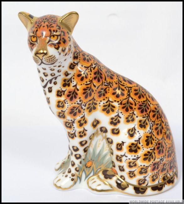 A Royal Crown Derby large paperweight Leopardess limited to 950 pieces with gold button. H14cm