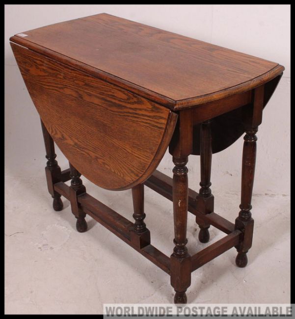 A 1930's golden oak barley twist drop leaf / gate leg dining table having solid oak table top above