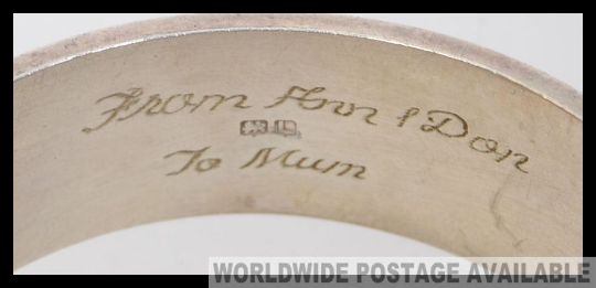A hallmarked silver ladies bangle, along with a charm bracelet featuring some white metal / silver charms (either unmarked, or marked 'silver' (or similar).)