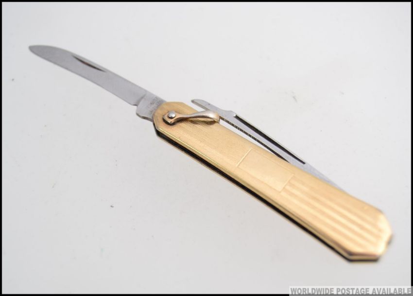 A good gold (tested to 9ct) but unmarked yellow metal handled miniature folding pen knife.