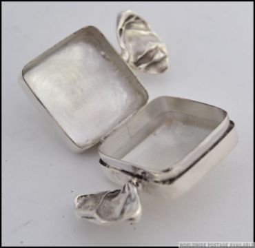A white metal 925 silver pill / snuff box in the form of a wrapped sweet. Stamped 925. L5cm 12g
