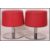 A pair of retro chrome and red vinyl upholstered stools having tulip style chrome bases