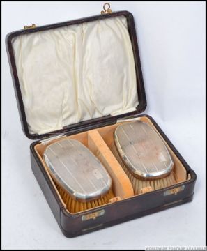 A pair of cased gentlemans silver hallmarked hair brushes, having a Birmingham assay mark dated for 1931 makers W I Broadway & Co