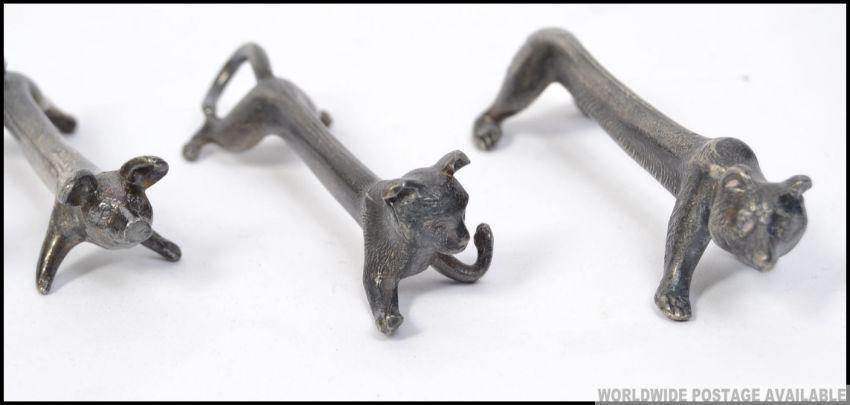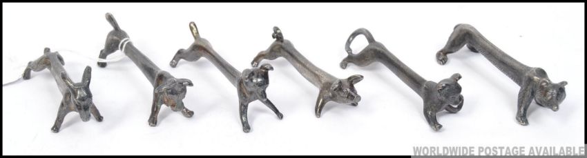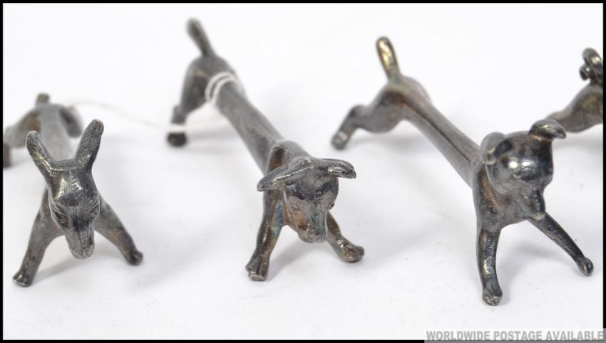 A stunning set of 6 silverplated Chinese knife rests each with differing animals. To include Dog, Cow, Bear, Fox, Pig & Goat ( see illustrations ). L10cm