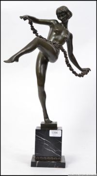 Pierre le Faguays (French 1892-1935) A large Art Deco bronze figure of a lady with a floral swag raised on a marble socle plinth base marked for Pierre le Faguays (French 1892-1935) . The bronze base stamped for the Bords De Seine Fonderie