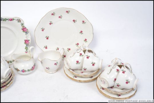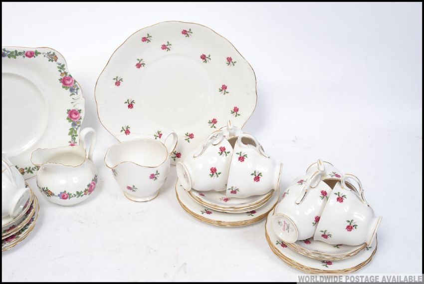 A Colclough chintz pattern part tea service together with a similar Tuscan china part service. To include cups, saucers, creamer etc