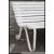 A Victorian cast iron garden bench with sloping seat and back with wooden slats being painted white all on hairpin cast iron supports. H73 x W153 x D80cm