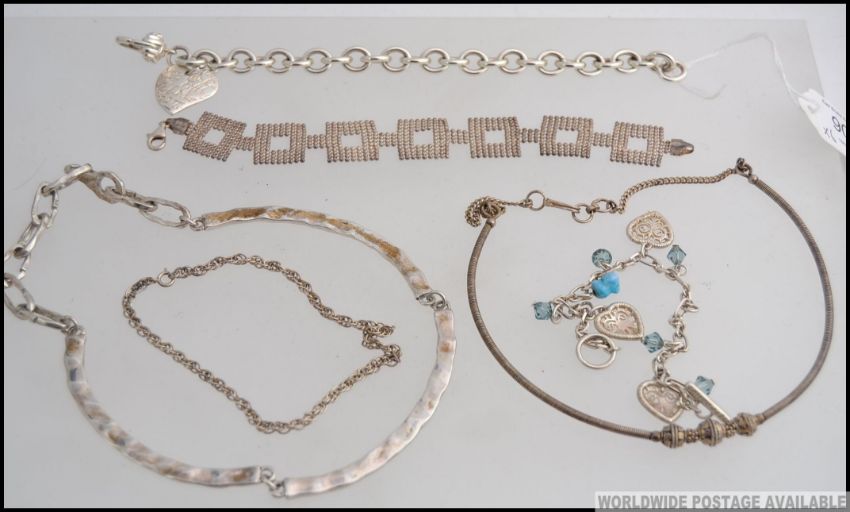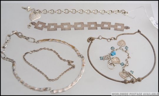 A collection of white metal silver necklaces and bracelets, each of different designs, stamped Tiffany, Jeff Banks, 925 etc