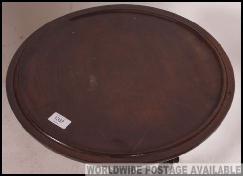 An early 20th century good quality tripod wine table. Raised on splayed leg base with turned column adorned and embellished with swags and decoration with gallery chamfered edge circular table top