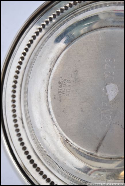 A silver Sterling wine coaster by Reed & Barton with ball bead work borders ( stamped to the base ) model x646. Total weight 94.1g. W15cm