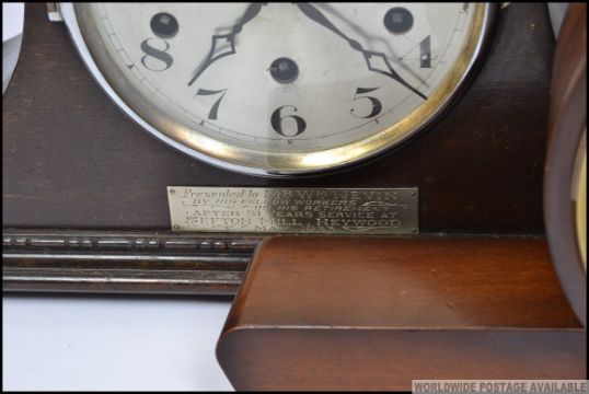 A collection of mid century clocks to include Bentima, Smiths walnut, oak 40's mantel clocks along with a Metamec carriage clock and another. H23cm