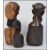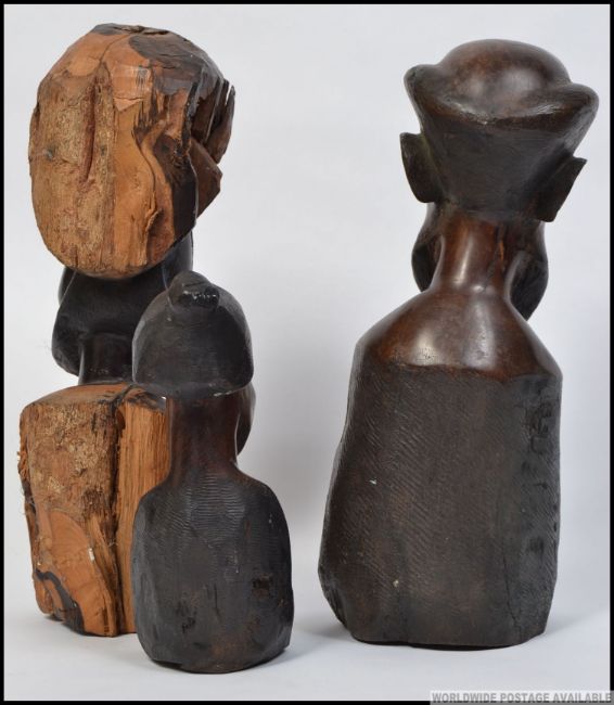 An African tribal of polished carved hardwood of a bearded tribesman. The bust carved to centre and plinth with uncarved top. H37 cm. Together with another African tribal bust of polished carved mahogany. The bust of a bearded tribesman raised on large plinth. Together with a smaller mahogany bust of a tribeswoman. H36 cm