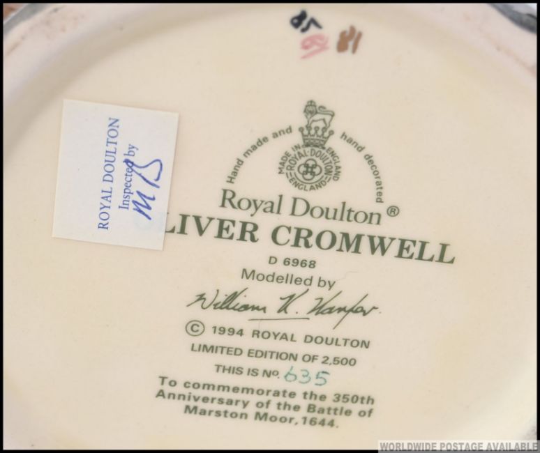 Oliver Cromwell D6917: A Royal Doulton twin handled character toby jug 635/2500. H19cm