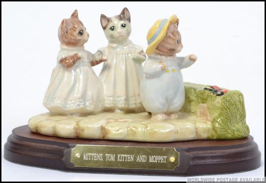 A Beswick Beatrix Potter figurine group Mittens , Tomkitten and Moppet on plinth base