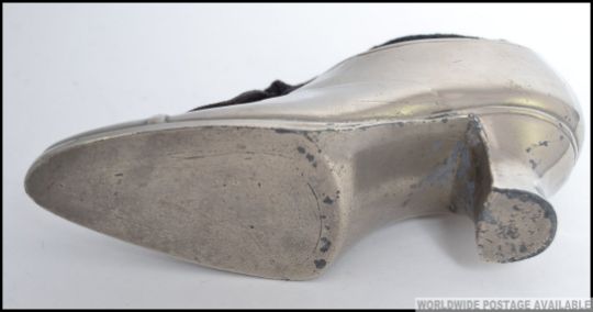 A vintage silver plated pin cushion in the form of a boot, with real laces to the front and cushion to the top. L10cm