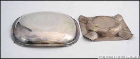 A silver and enamel set peanut dish bearing the shipping line flag for Sartori & Berger (German Shipping Company) total weight 28.5g. Together with a silver hallmarked ashtray ( marks illegible ) weight 23.6g