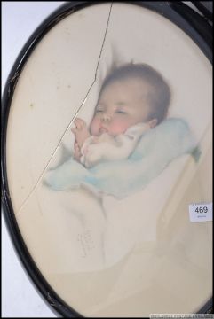 A pair of retro mid century childs prints in ebonised frame with notation to each by Bessie Peach, Germany