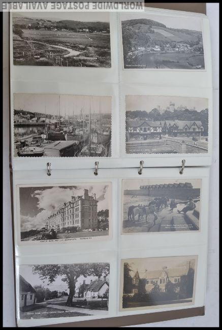 REAL PHOTOGRAPHIC; A collection of RP postcards. All 584 cards black & white, standard small size British topographical views. Housed in two ring binders. Old to 1950s.