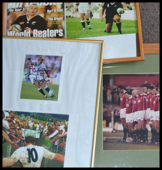 A framed and glazed British Lions tour photo along with a signed Johnny Wilkinson and Jonah Lomu