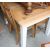 A country pine painted shabby chic dining table having a scrubbed pine top painted square legs united by stretchers, with a single drawer to front