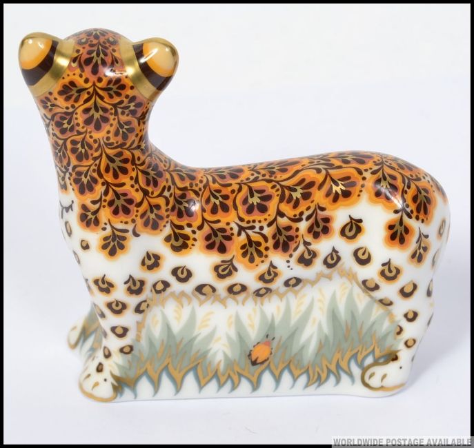 A Royal Crown Derby paperweight Leopard Cub with gold stopper. L8cm