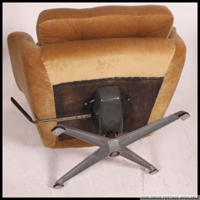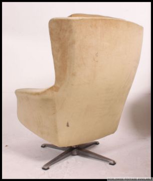 A pair of original retro G Plan 1960's swivel / rocking egg shape danish inspired armchairs, retaining the original upholstery chosen by the customer and not available from the E Gomme colour range raised on chrome quadruped feet, having removable cushions along with matching footstools