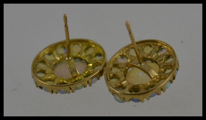 A pair of 9ct gold and opal ladies earrings. Total weight 2.1g