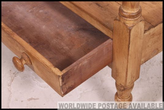 A Victorian country pine washstand table - side hall table. Raised on turned legs with ceramic bowl to centre having a splayed gallery splashback surround. H94 x W85 X D44cm