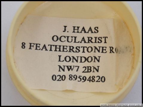 3 surgical glass replacement eyes by Jost Haas of London. The hand blown glass eyes ( no longer made ) each within case.