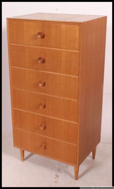 A retro 1970's Ernest Gomme for G-Plan light oak pedestal chest of drawers raised on tapered legs. Matching dressing table in lot 1137